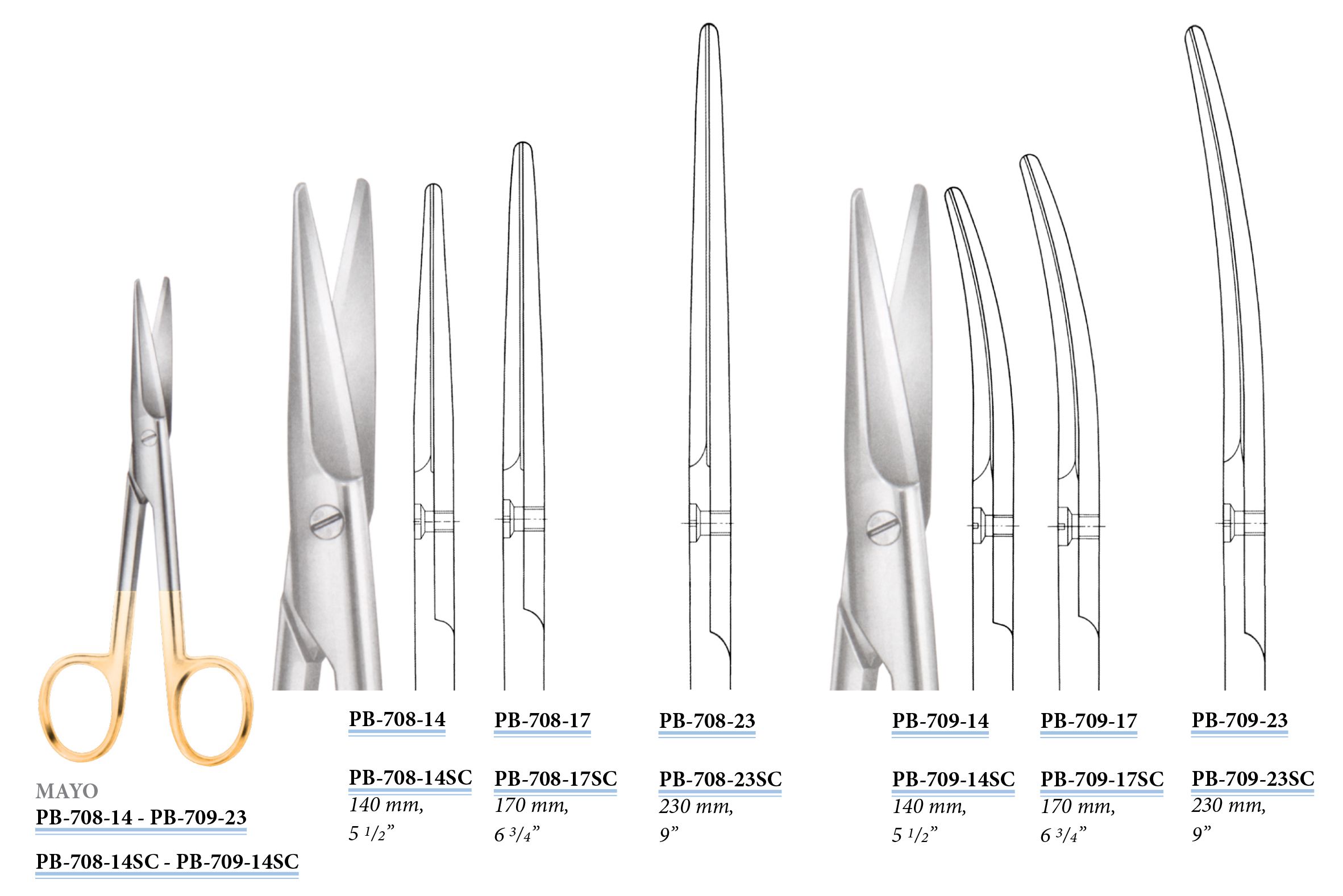 PB-708-23 Mayo preparáló olló, egyenes, 230 mm, keményfémbetétes