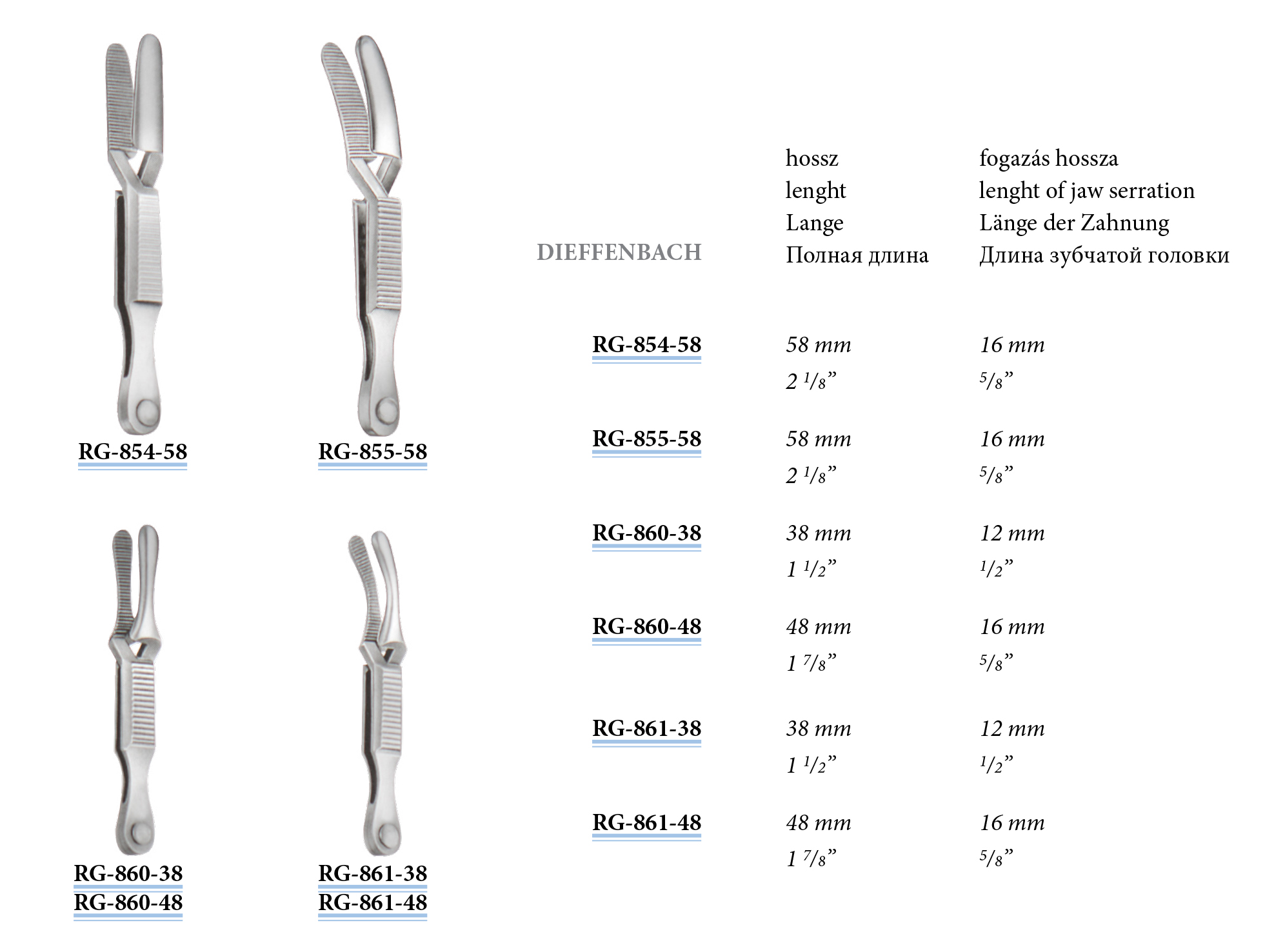 RG-855-58 Dieffenbach bulldogcsipesz, hajlított, 16 mm, 58 mm